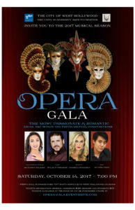 “Opera by the Beach” under the artistic direction of Mary Lou Basaraba continues its successful tour in Southern California at the Fiesta Hall in West Hollywood on Saturday, October 14th at 7 PM.